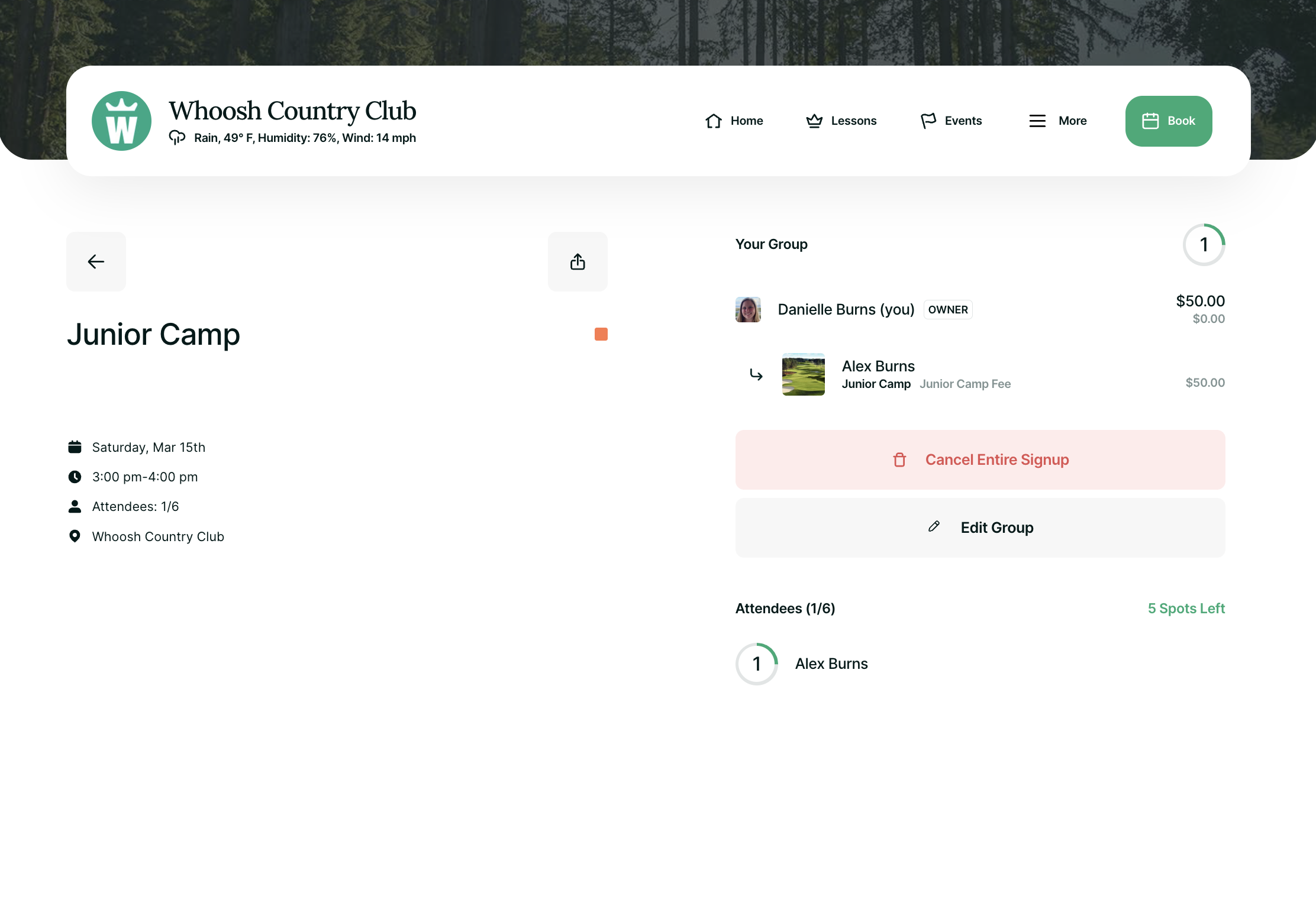 Hosting junior camps or clinics? Now members can register others for an event without needing to attend themselves.